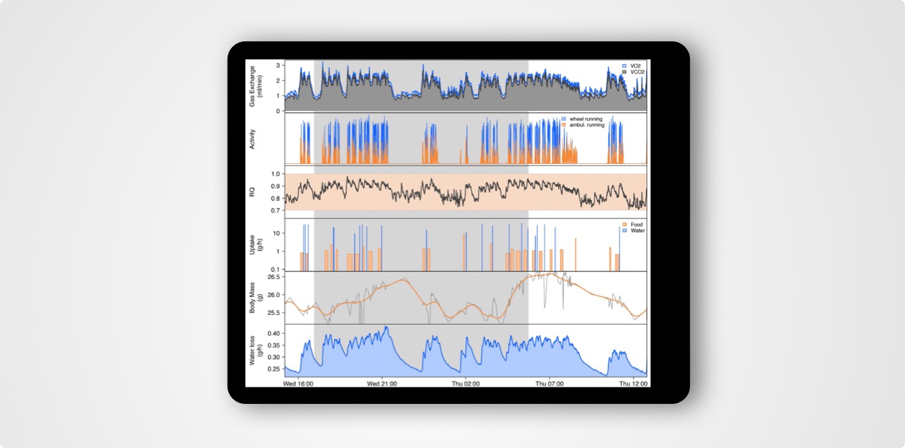 隨著社會對于健康、壽命與衰老過程之間制衡研究的關(guān)注,糖尿病、肥胖癥等代謝性疾病的發(fā)病機制及防治的研究是目前的科研熱點。代謝測量在糖尿病,肥胖癥等代謝性疾病研究中作用日益凸顯,從模式動物整合性研究已經(jīng)將能量代謝測定應(yīng)用于深入探究糖尿病,肥胖癥,心血管疾病、胰島素耐受及代謝綜合征等領(lǐng)域。然而,目前市面上大多數(shù)代謝監(jiān)測系統(tǒng)仍然依賴于幾十年前的老舊技術(shù),其系統(tǒng)性能欠佳,動物環(huán)境應(yīng)激強烈,導(dǎo)致獲得的數(shù)據(jù)質(zhì)量較差、時間分辨率模糊、重復(fù)性欠佳。于此,Sable Systems推出了高分辨率小動物代謝與行為學(xué)表型分析工具,對模式動物的能量平衡、食物偏好、環(huán)境因素以及行為進行深入的研究和分析。尤其,在評估藥物療效,神經(jīng)生物學(xué)或生理學(xué)指標(biāo)變化時,相關(guān)的作用模式僅能從極小的信號中加以辨別,高時間分辨的測量工具成為實驗成敗之關(guān)鍵。